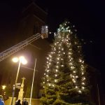 Stolz trugen die Beggendorfer Kindergarten- und Grundschulkinder heute Nachmittag ihre liebevoll verpackten Kartons zu den Feuerwehrmännern. Denn die halfen tatkräftig dabei, den großen Tannenbaum an der Kirche in der Mitte des Dorfes unter Einsatz einer Drehleiter zu schmücken. Beobachtet wurden sie dabei von zahlreichen Schaulustigen, die die Adventszeit bei Weihnachtsmusik, Glühwein, Tee und Würstchen einläuteten.