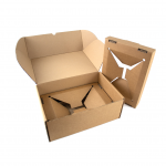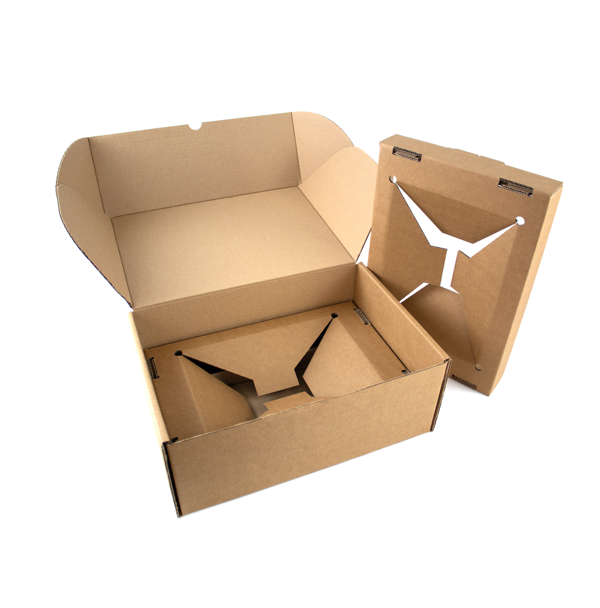 Unsere Lösung: Die Verpackung ist komplett aus Wellpappe, auf Plastik wird vollständig verzichtet. Sie ist durch federnde Einlagen, die nachgeben und dabei gleichzeitig stützen, so variable, dass das sensible medizintechnische Produkt sicher versendet werden kann.