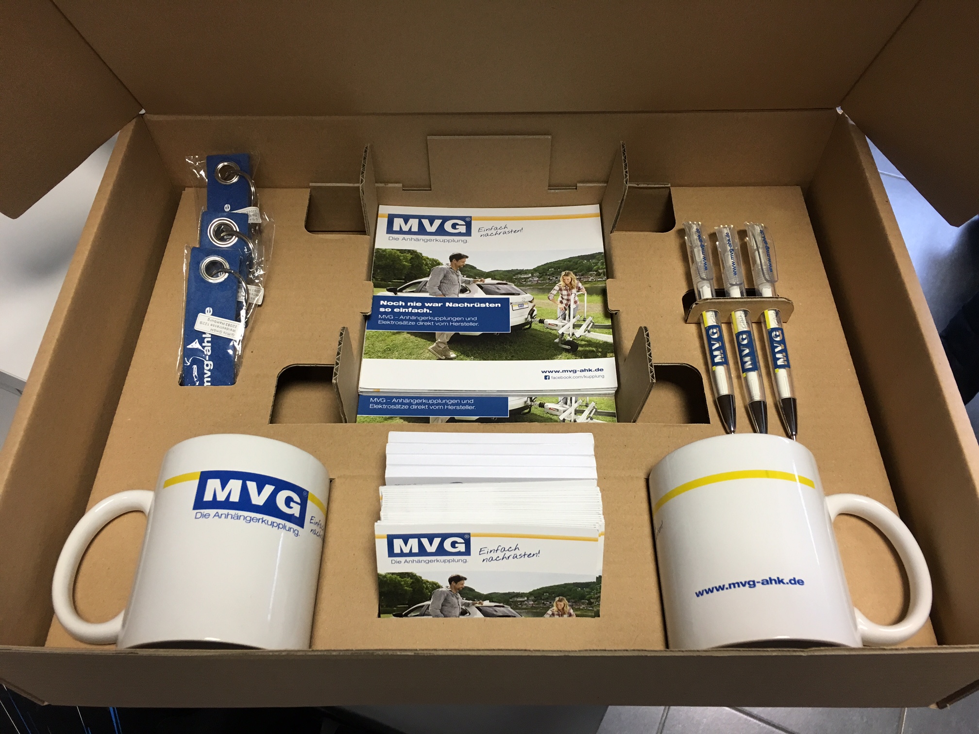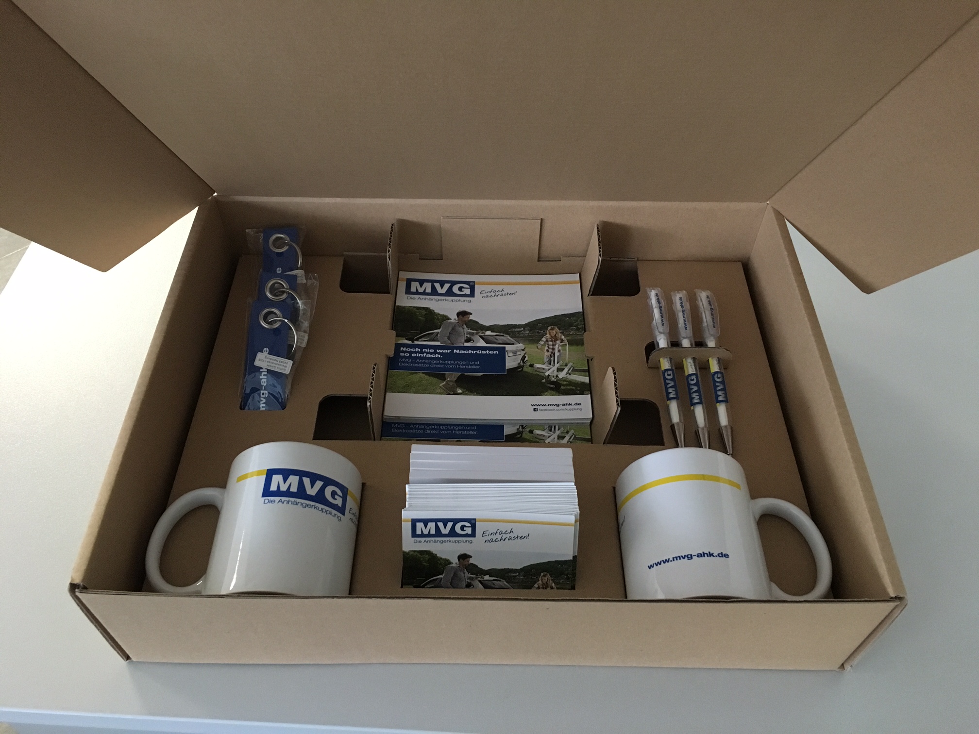 Für einen Servicepartner galt es, ein Promotion-Paket zu entwickeln. Ziel war es, dass die verschiedenen Marktingartikel sicher und gut sortiert beim Kunden ankommen – unabhängig, ob das Paket vom Außendienstmitarbeiter persönlich übergeben oder per Paketdienst versendet wird. Wir von Umbach Verpackungen haben dazu eine Stanzeinlage aus Wellpappe konzipiert. Übrigens ist dies nicht nur eine praktische, sondern auch eine kostengünstige Lösung, selbst wenn die Auflage kleiner ist. Alle Artikel plus Stanzeinlage haben wir schließlich in einen wieder verschließbaren Stanzkarton gepackt. Fertig ist das Promotion-Paket.