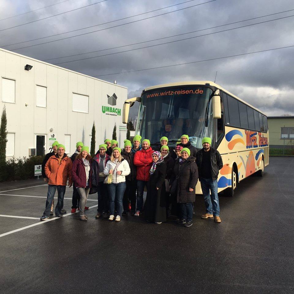 In Weihnachtsmützen der Unternehmensfarbe grün bummelten die Mitarbeitenden durch den Winterzauber des Phantasialandes und testeten die Fahrgeschäfte – manchmal mit ganzem Körpereinsatz. Anschließend setzte sich die Mannschaft bei einem leckeren Essen gemütlich zusammen.