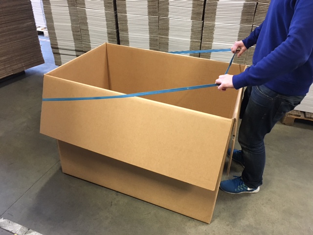 Kennen Sie das? Sie wollen einen großen Karton aus schwerem Material – auch Palettencontainer genannt – befüllen, aber der Deckel klappt immer wieder hoch. Dadurch ist es sehr mühsam, den Palettencontainer bequem zu beladen. Vielleicht haben Sie sich, ähnlich wie viele unserer Kunden, bisher damit geholfen, dass Sie die Deckelklappen für die Zeit des Befüllens mit Klebeband festgeklebt haben. Das bringt aber ein paar Nachteile mit sich: