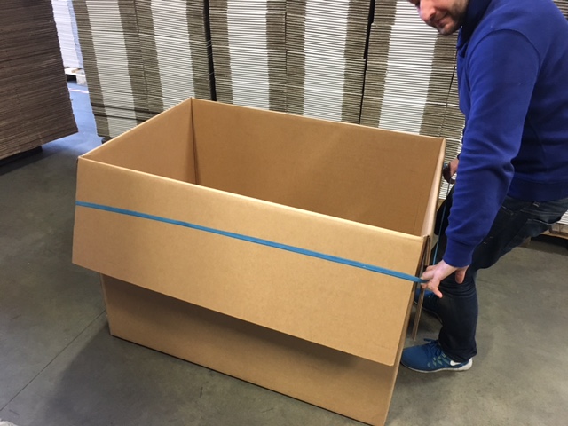 Kennen Sie das? Sie wollen einen großen Karton aus schwerem Material – auch Palettencontainer genannt – befüllen, aber der Deckel klappt immer wieder hoch. Dadurch ist es sehr mühsam, den Palettencontainer bequem zu beladen. Vielleicht haben Sie sich, ähnlich wie viele unserer Kunden, bisher damit geholfen, dass Sie die Deckelklappen für die Zeit des Befüllens mit Klebeband festgeklebt haben. Das bringt aber ein paar Nachteile mit sich: