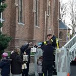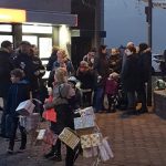 Stolz trugen die Beggendorfer Kindergarten- und Grundschulkinder heute Nachmittag ihre liebevoll verpackten Kartons zu den Feuerwehrmännern. Denn die halfen tatkräftig dabei, den großen Tannenbaum an der Kirche in der Mitte des Dorfes unter Einsatz einer Drehleiter zu schmücken. Beobachtet wurden sie dabei von zahlreichen Schaulustigen, die die Adventszeit bei Weihnachtsmusik, Glühwein, Tee und Würstchen einläuteten.