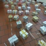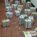 Sehen Sie hier einige Bilder vom Basteln, Verpacken und dem Aufhängen der Pakete.
