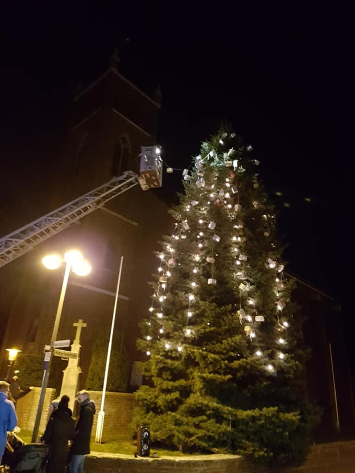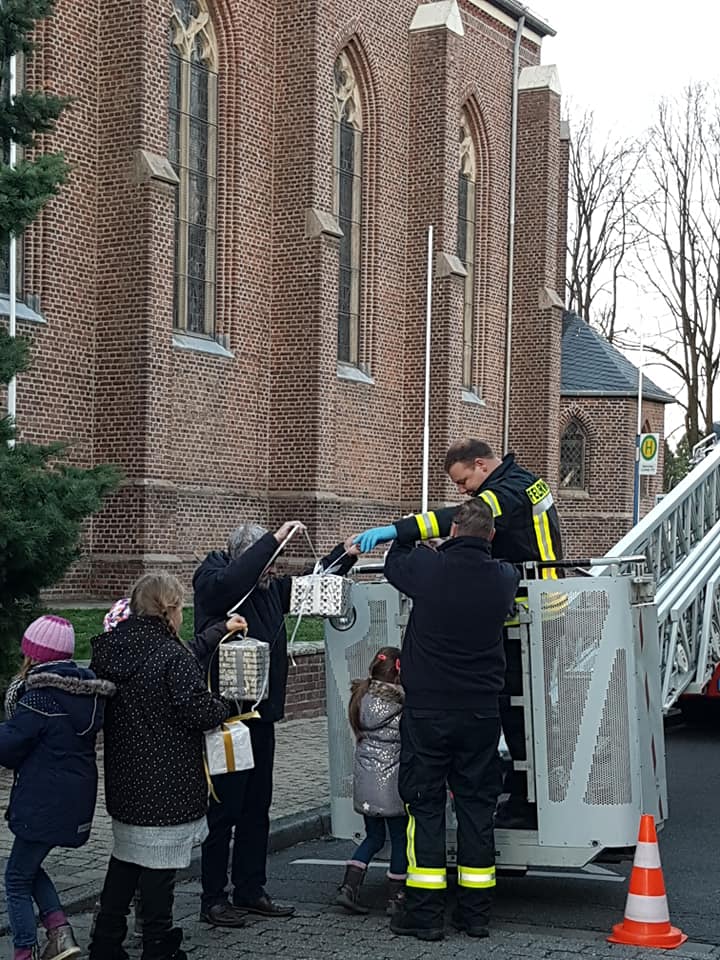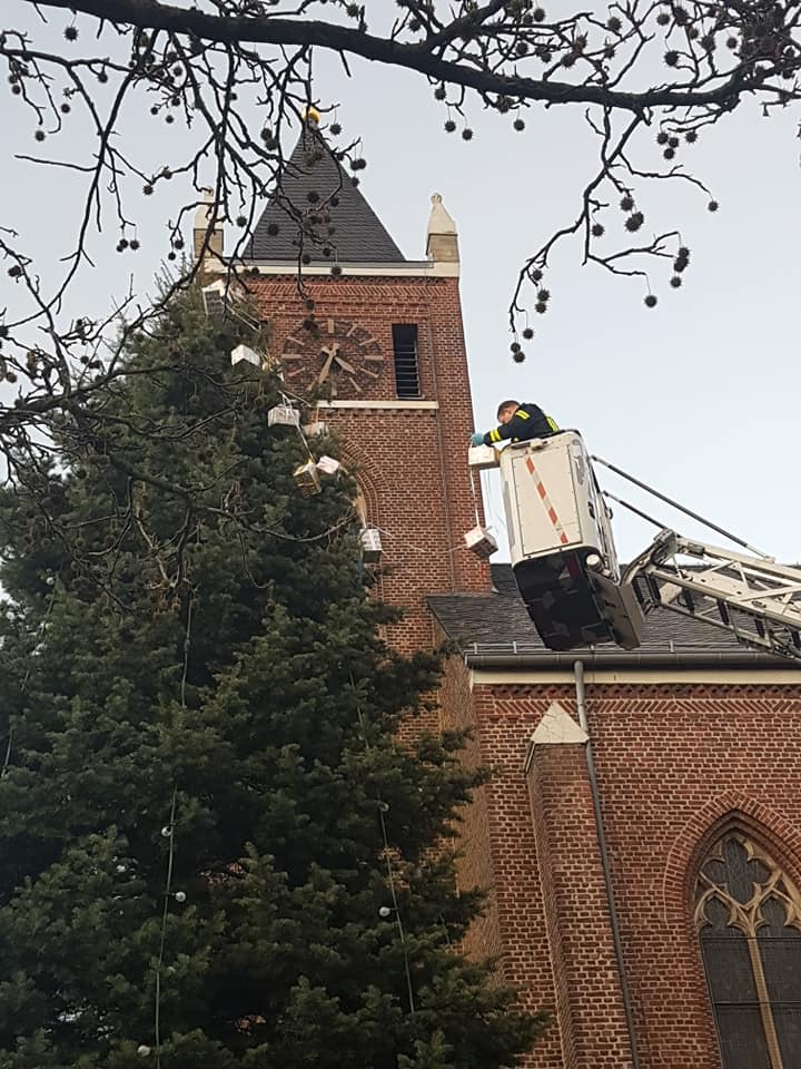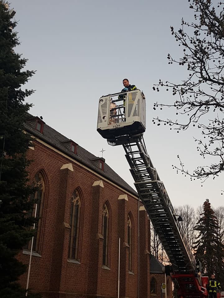 Stolz trugen die Beggendorfer Kindergarten- und Grundschulkinder heute Nachmittag ihre liebevoll verpackten Kartons zu den Feuerwehrmännern. Denn die halfen tatkräftig dabei, den großen Tannenbaum an der Kirche in der Mitte des Dorfes unter Einsatz einer Drehleiter zu schmücken. Beobachtet wurden sie dabei von zahlreichen Schaulustigen, die die Adventszeit bei Weihnachtsmusik, Glühwein, Tee und Würstchen einläuteten.