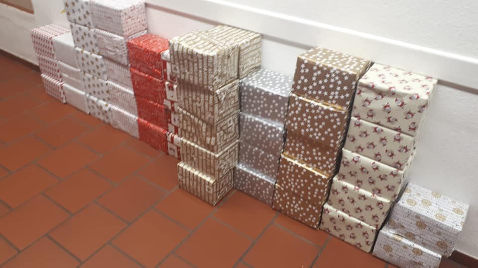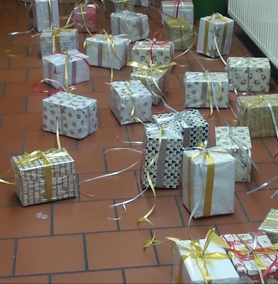 Sehen Sie hier einige Bilder vom Basteln, Verpacken und dem Aufhängen der Pakete.